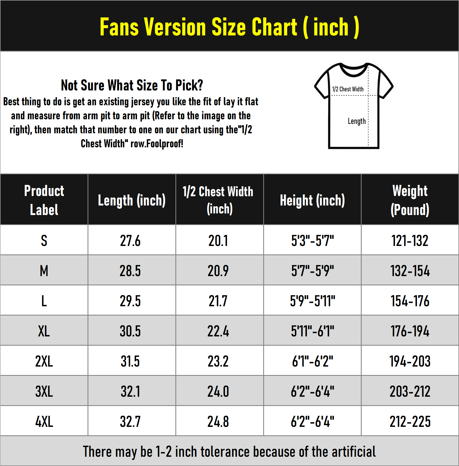 Fans Version Size Guide: